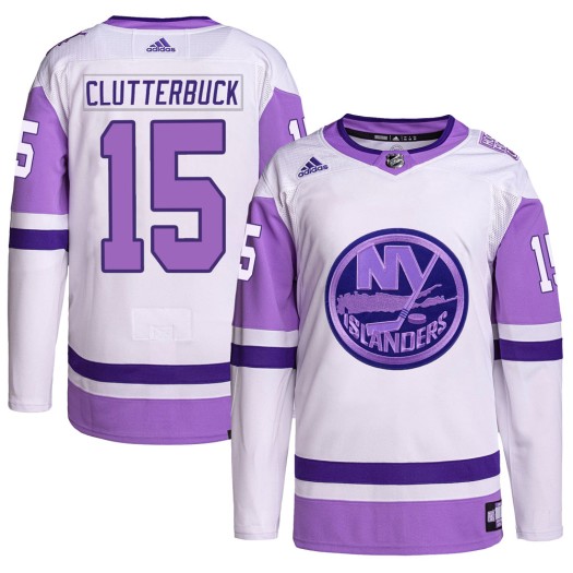 Get the perfect look to let everyone know you are a true New York Islanders fan with this Cal Clutterbuck New York Islanders Men's Adidas Authentic White/Purple Hockey Fights Cancer Primegreen Jersey! This jersey is perfect for the New York Islanders fan who wants a great new way to show some spirit for the Islanders. It features authentic graphics and...