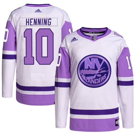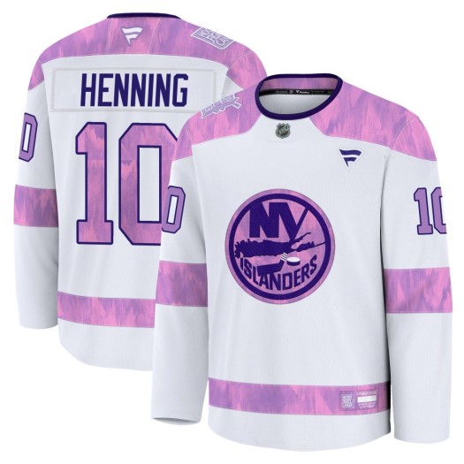 Get the perfect look to let everyone know you are a true New York Islanders fan with this Lorne Henning New York Islanders Men's Adidas Authentic White/Purple Hockey Fights Cancer Primegreen Jersey! This jersey is perfect for the New York Islanders fan who wants a great new way to show some spirit for the Islanders. It features authentic graphics and...