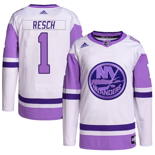 Get the perfect look to let everyone know you are a true New York Islanders fan with this Glenn Resch New York Islanders Men's Adidas Authentic White/Purple Hockey Fights Cancer Primegreen Jersey! This jersey is perfect for the New York Islanders fan who wants a great new way to show some spirit for the Islanders. It features authentic graphics and logos...