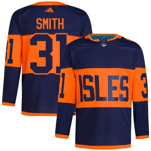 Get the perfect look to let everyone know you are a true New York Islanders fan with this Billy Smith New York Islanders Men's Adidas Authentic Navy 2024 Stadium Series Primegreen Jersey! This jersey is perfect for the New York Islanders fan who wants a great new way to show some spirit for the Islanders. It features authentic graphics and logos along...