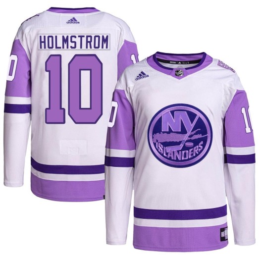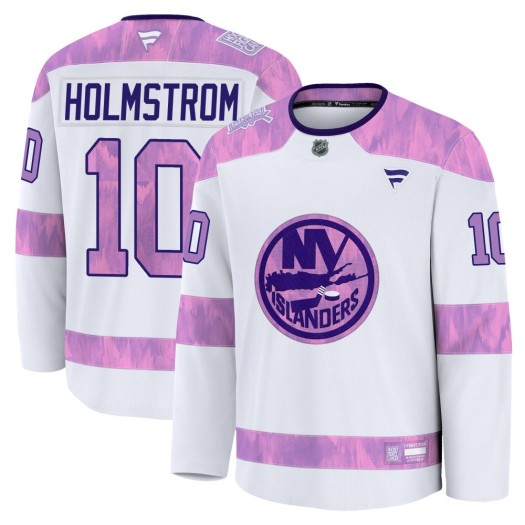 Get the perfect look to let everyone know you are a true New York Islanders fan with this Simon Holmstrom New York Islanders Men's Adidas Authentic White/Purple Hockey Fights Cancer Primegreen Jersey! This jersey is perfect for the New York Islanders fan who wants a great new way to show some spirit for the Islanders. It features authentic graphics and...